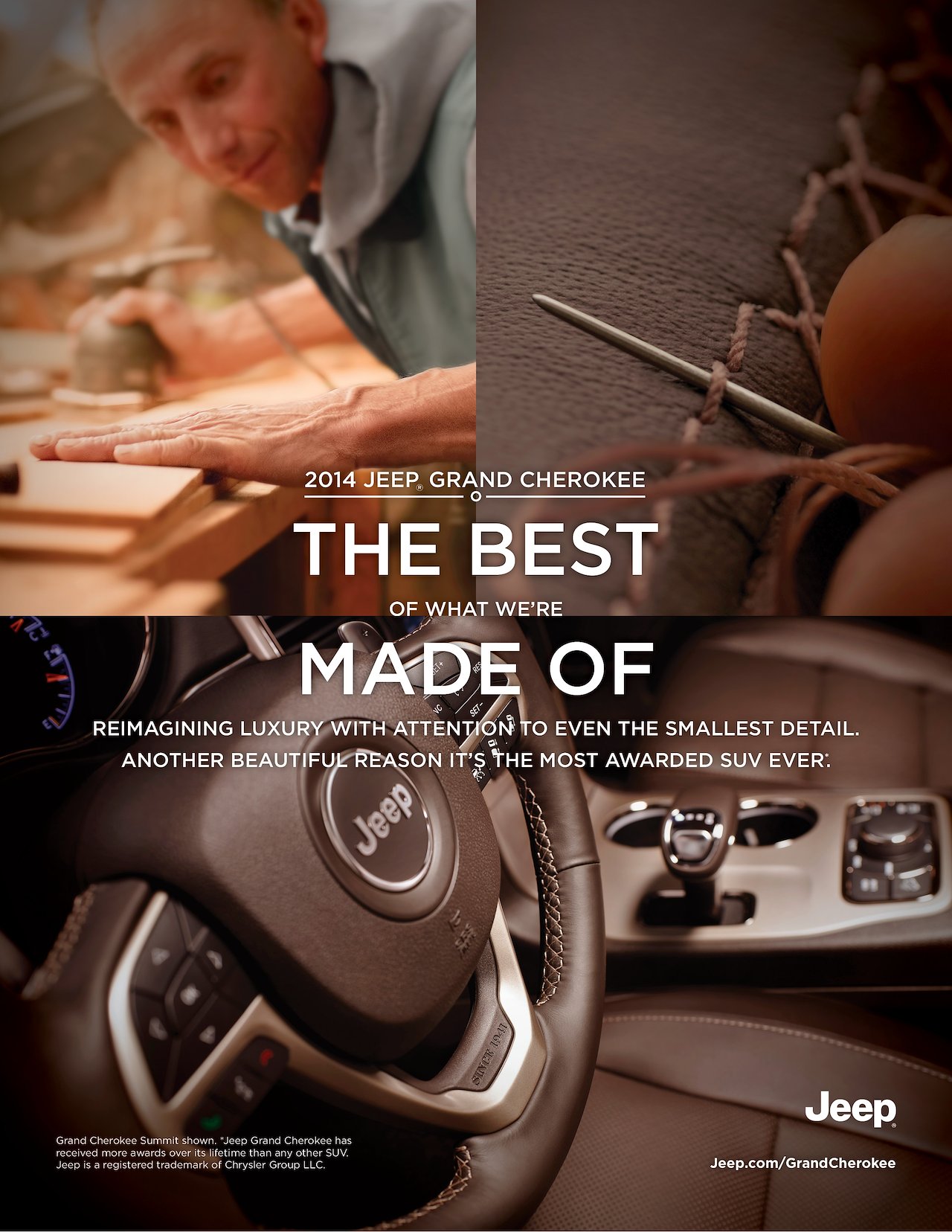 Launch campaign for the 2014 Jeep Grand Cherokee. The campaign centers around the notion that everyday, we chip away, to give you The Best of What We’re Made of.
